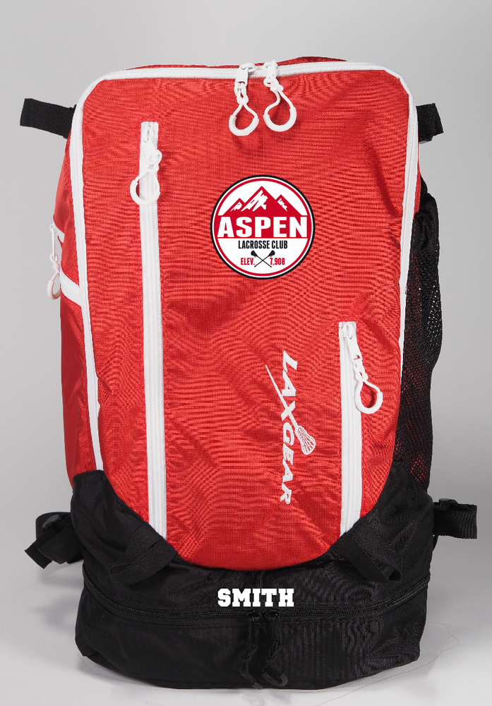 Aspen red bags with lifetime warranty. Team discount included with Logo and player name.